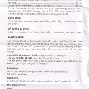 Siro Methorphan Bee với thành phần từ chiết xuất rễ Marshmallow, dịch chiết lá thường xuân và keo ong sẽ hỗ trợ giảm ho và giảm đờm hiệu quả. Sản phẩm gần như không gây tác dụng phụ, an toàn để sử dụng lâu dài.