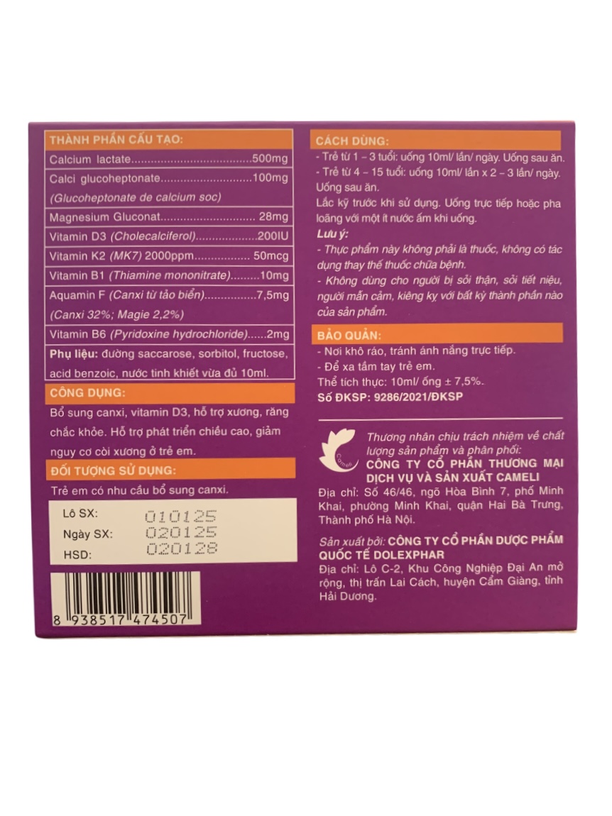 Bổ sung canxi, vitamin D3, hỗ trợ xương, răng chắc khoẻ. Hỗ trợ phát triển chiều cao, giảm nguy cơ còi xương ở trẻ em.