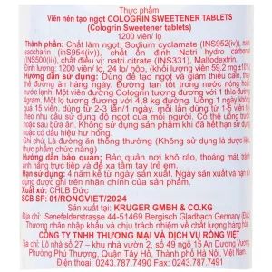 Viên nén tạo ngọt Cologrin được nhập khẩu trực tiếp từ Đức, dùng thay thế đường ăn hàng ngày.