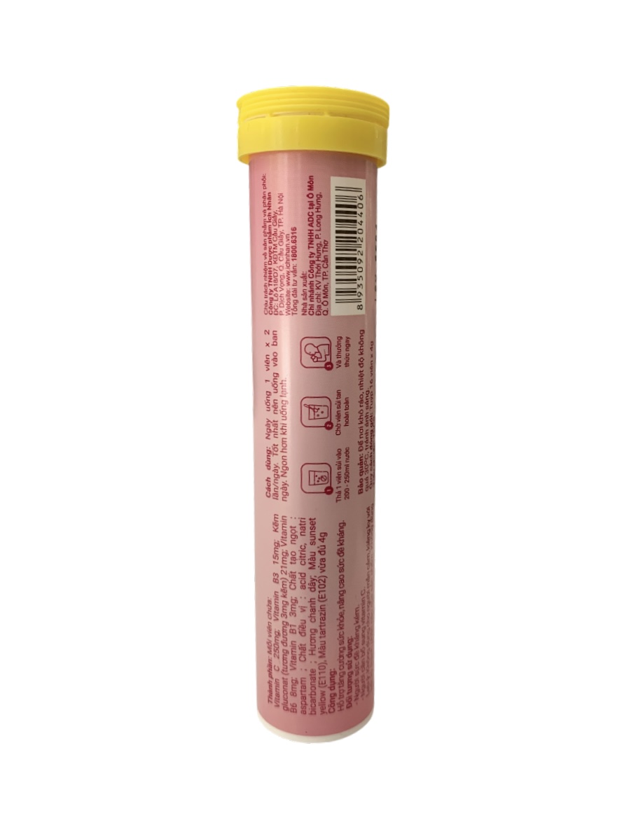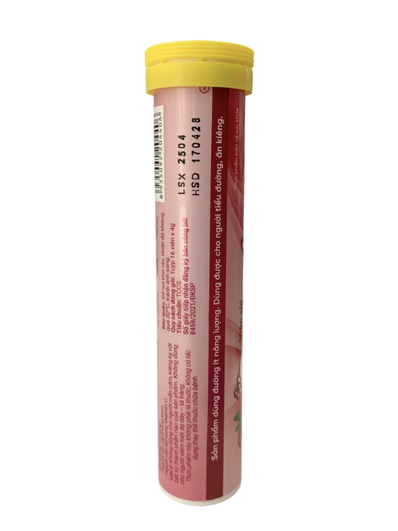 Chất điều vị: acid citric, natri bicarbonate, Hương chanh dây, Màu sunset yellow (E110), Màu tartrazin (E102) vừa đủ 4g.