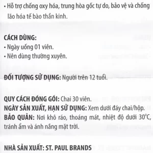 - Hỗ trợ chống oxy hóa, trung hòa gốc tự do, bảo vệ và chống lão hóa tế bào thần kinh.