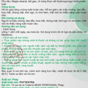 - Uống 1 viên mỗi ngày, sau bữa ăn. Sử dụng trước khi đi ngủ do sản phẩm có chứa melatonine
