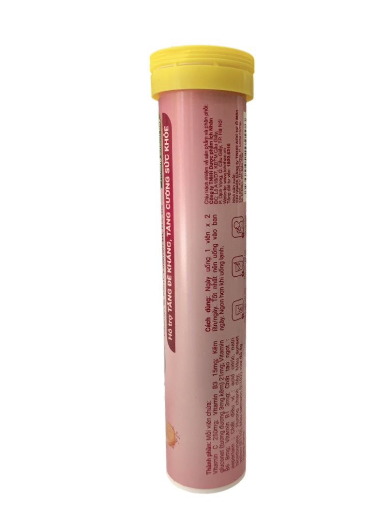 Chất điều vị: acid citric, natri bicarbonate, Hương chanh dây, Màu sunset yellow (E110), Màu tartrazin (E102) vừa đủ 4g.